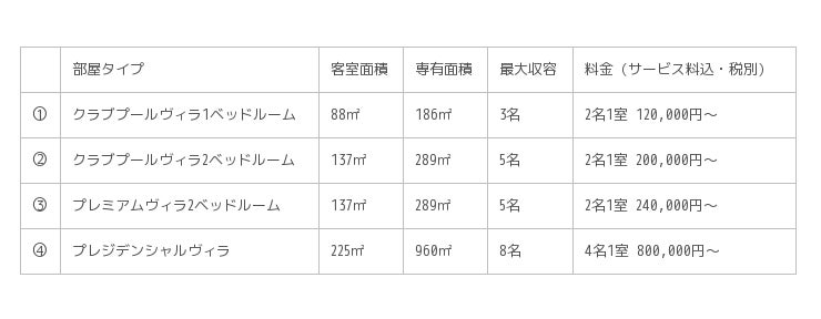 客 室 :全48室 (全室プライベートプール付き) 最大収容人数 169名 *客室は全室禁煙