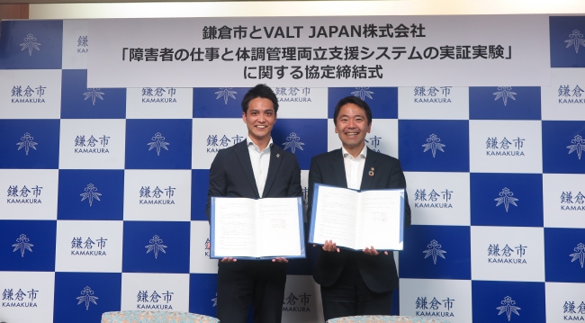令和元年(2019年)10月7日、障がい者の「仕事と体調管理」の両立支援システム「NEXT HERO」を開発・運営するVALT JAPAN株式会社(代表取締役:小野 貴也)は、鎌倉市(市長 松尾 崇)と、障害者の雇用継続に必要な、仕事と体調管理の両立を支援するシステム「NEXT HERO」の実証実験を行うため、協定を締結しました。
