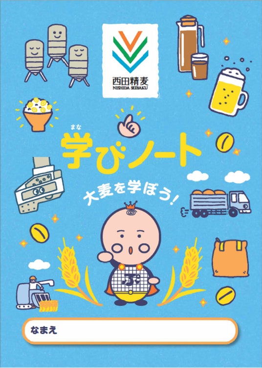 新入社員が作成した学びノート。楽しく学べる工夫がいっぱい。大麦のひみつやクイズのほか、製造工程がわかるイラストも。食育授業のツールとして無料で配布する。