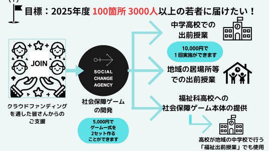 特定非営利活動法人Social Change Agency(以下、当法人)は、2024年11月11日から12月27日まで、中学生・高校生を対象とした社会保障制度学習のためのアナログゲーム「社会保障ゲーム」の開発・普及に向け、目標金額260万円のクラウドファンディングに挑戦します。