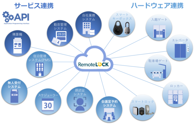APIを介し、各種予約サービスや業務システム、ハードウェアと連動した解錠キーの自動発行・通知を行うことで、施設のカギの受け渡しの手間や窓口業務の煩雑さを低減できるアクセスコントロールのオープンプラットフォームです。