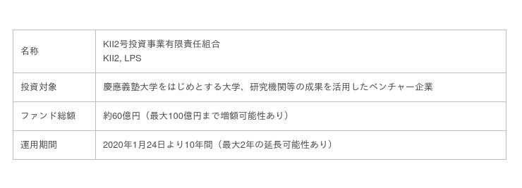 慶應義塾大学のベンチャーキャピタルである「慶應イノベーション・イニシアティブ」(通称:KII、代表取締役社長 山岸広太郎)は、同社として2つめとなるベンチャーキャピタルファンドを新たに設立いたしました。