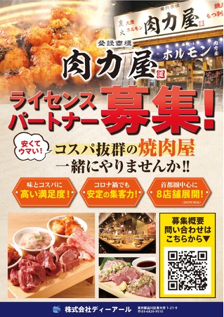 業績好調につき、「肉力屋」では、一緒に事業を展開いただける、ライセンスパートナーを募集しております。