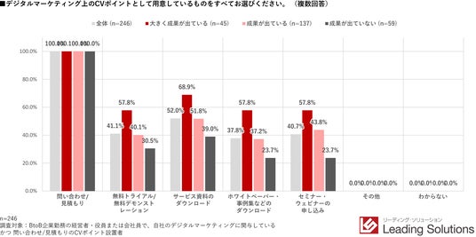 さらにCVポイントの種類を調査したところ、「大きく成果が出ている」回答者属性は、