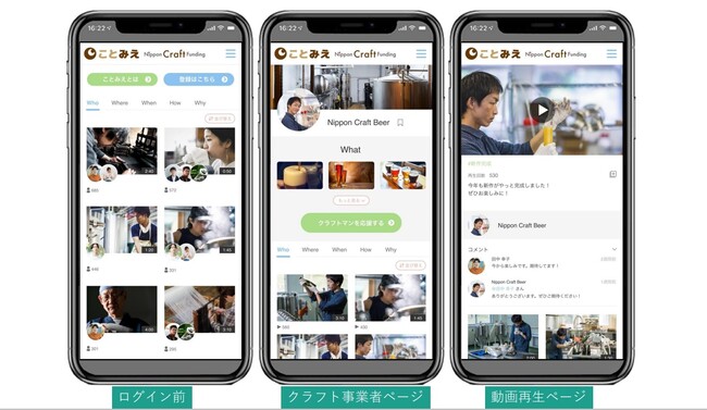 コンテンツを視聴する消費者ユーザーは、アプリからそのコンテンツを視聴することで、モノづくりの「生産プロセス」のストーリーを見ることができ、気になった商品はサービス内でそのまま気軽に購入型クラウドファンディング方式で応援購入することができます。
