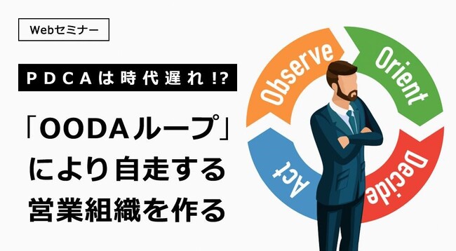 今回のまとめ記事でも取り扱っており、営業ラボ内でもTOPアクセスを誇るキーワード「OODA」をテーマにしたWebセミナー「PDCAは時代遅れ?「OODAループ」により自走する営業組織を作る」を2023年12月8日に開催いたします。