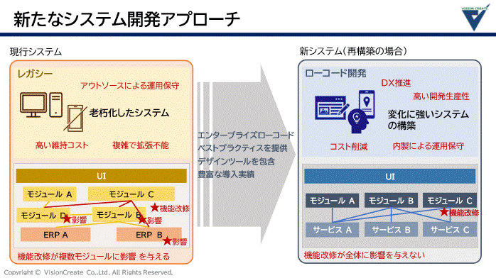 ビジョンクリエイトは、下記の新たなアプローチで、ローコードによるシステム構築を行います。