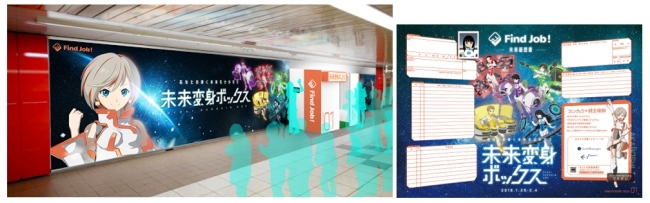 転職を通じてキャリアアップをする社会人が増えている一方で、現状を変えることに悩んでいる方も多くいらっしゃると考えています。今回、現在の仕事や将来について考えるきっかけにしていただきたいと考え、楽しく職業適正診断が実施でき、自分がアニメキャラクターになったオリジナルの履歴書が作成できる「未来変身ボックス」を、仕事帰りに気軽に立ち寄ることができる新宿駅コンコースに設置いたします。