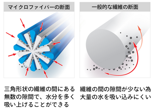 自社選定のオリジナルマイクロファイバー生地が、高い吸水性と速乾性を実現。