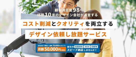 株式会社クオーツ(取締役CEO:松江 翔輝)は、名刺やWebサイトなどのデザインを月額7万円で何度でも依頼できるサービス「ウィズデザ[with-designer]」を開始、メルマガ登録者限定キャンペーンも始めました。ウィズデザは、経歴10年で現在までに総顧客対応社数500社以上、顧客満足度98%の実績を持つクオーツのデザインノウハウをまるっと詰め込んだサービスで、バナーは2営業日、ホームページは6営業日でデザインを制作します。8月末までにお申込みいただくと、月額費用が通常7万円のところ5万円に、さらに初期費用6万円が無料になる「今だけお得のリリース記念」も行っています。