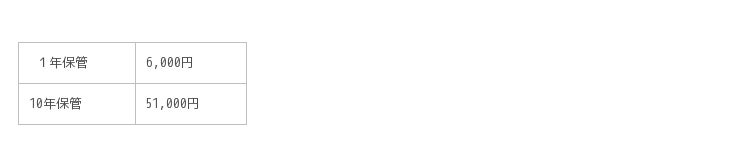 ※保管費用:初年度1年間の保管費用です。更新に際しては、事前にご案内をお送りさせていただきます。