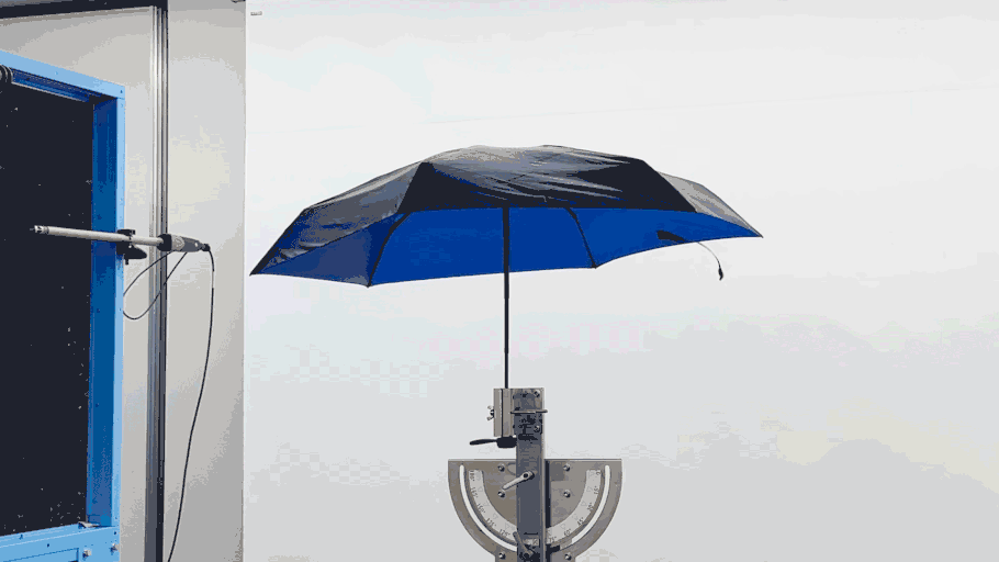 ※試験では徐々に風速を上げていきます。突発的な風に対しては、傘骨が折れてしまう場合があります