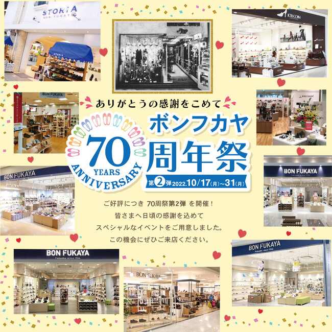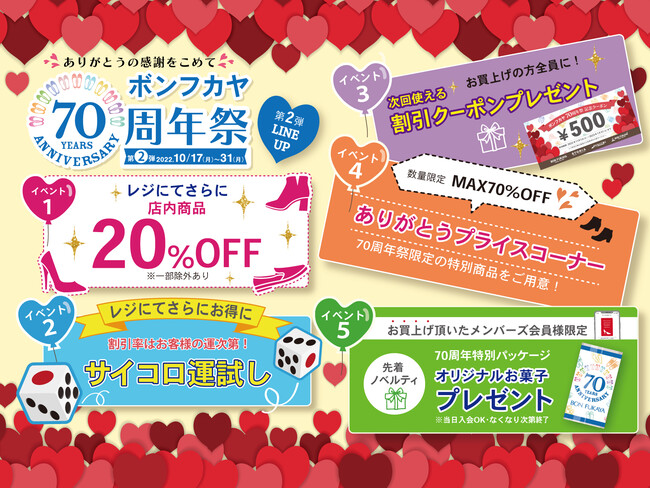 ご好評につき第2弾!前回よりもっとお得にお楽しみいただける「5つの特別イベント」をご用意したボンフカヤ70周年祭を開催!