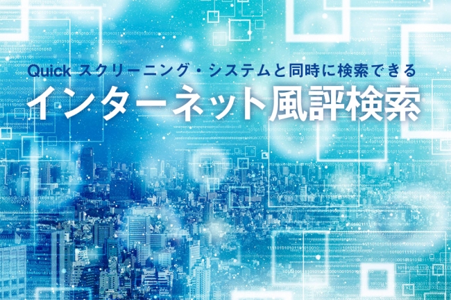 そこで当社ではエルテス社と共同で、インターネット上の風評を検索し、その結果を自動で判別する新サービス「インターネット風評検索」を開発いたしました。この機能が従来の「QSS」に追加されることによって、より厳格で立体的なコンプライアンスの整備に資する、効率的な反社チェックを実現できます。
