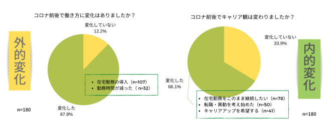 1. コロナ前後で在宅勤務の導入が進み「キャリア観に変化があった」女性が7割近くに