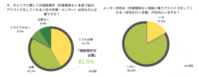 3. 8割以上が「キャリアに関する相談相手が必要」と回答するも「社内に相談相手がいない」女性が82.8%に