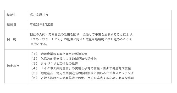 株式会社福邦銀行(頭取 渡邉 健雄)は、福井県坂井市(市長 池田 禎孝)との地方創生に関する「包括連携協定」に基づき、「坂井市まち・ひと・しごと創生推進計画」の実施・実現に向けて、福井県坂井市へ企業版ふるさと納税の寄附見込企業の紹介を行うことになりましたので、お知らせいたします。