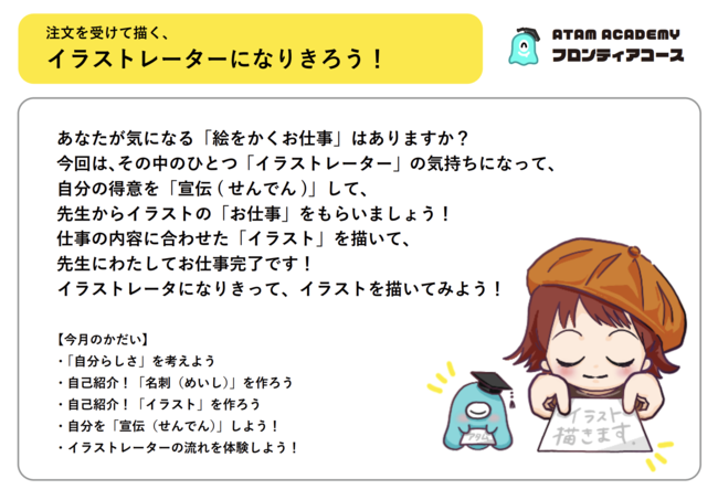 子ども向けオンラインイラスト教室を運営する株式会社アタム(本社:東京都港区、代表取締役 宮澤 惇)は、12月より新講座「イラストレーターになりきろう!」をリリースいたしましたことをお知らせします。
