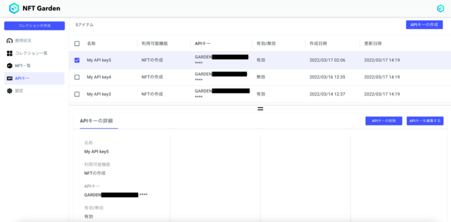 初回リリース時はβ版ユーザーのNFT作成枠に制限を設けておりましたが『もっとNFT Gardenを活用してNFTを作成したい』というユーザーの声を受け、β版ユーザーにおける利用制限を撤廃しNFT作成可能数を無制限といたしました。これにより、より多くのクリエイターへNFT作成にチャレンジ頂く機会を創出する事ができ、企業のAPI利用による自社サービスのWeb3化を推進するサポートができると考えております。