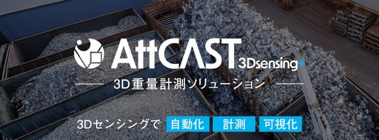 「AttCAST 3DSensing+ 3D重量計測ソリューション」は、最新の3D空間認識技術とAIアルゴリズムを活用し、金属スクラップの在庫をリアルタイムに計測・可視化できるソリューションです。