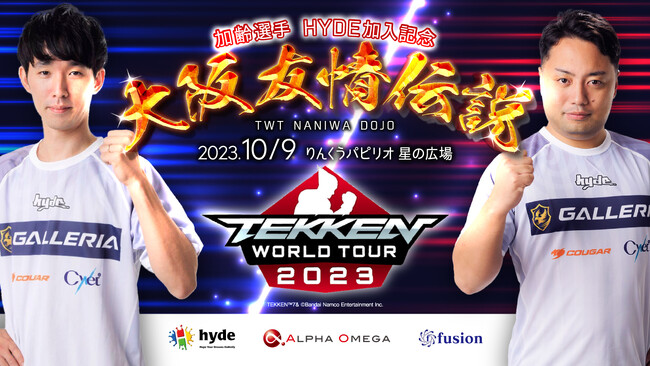 株式会社ハイド(本社:東京都新宿区、代表取締役:柳原健一、以下「ハイド」)は、運営するeスポーツチーム teamHYDEに、新しく鉄拳7プロライセンス保持者の加齢選手が、加入したことを発表します。加齢選手のteamHYDE加入を記念して、TEKKEN World Tour 2023のポイント対象大会である『TWT NANIWA DOJO 大阪友情伝説』を2023年10月9日に大阪府泉佐野市のりんくうパピリオ星の広場で開催します。