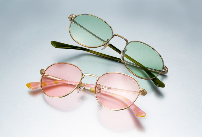 「最大の特徴は“ワニグリーン”ですね。このレンズの色、イケてません?トレンドにもバッチリハマりますし、今までのものにはない面白さがあるかな~って。そんな遊び心のあるレンズに対して、あえてフレームは渋く、アンティーク感のあるゴールドを選びました。これもメガネ同様、遊びでもシックにでも合わせられるようにしました。」