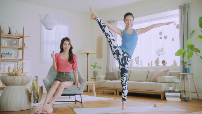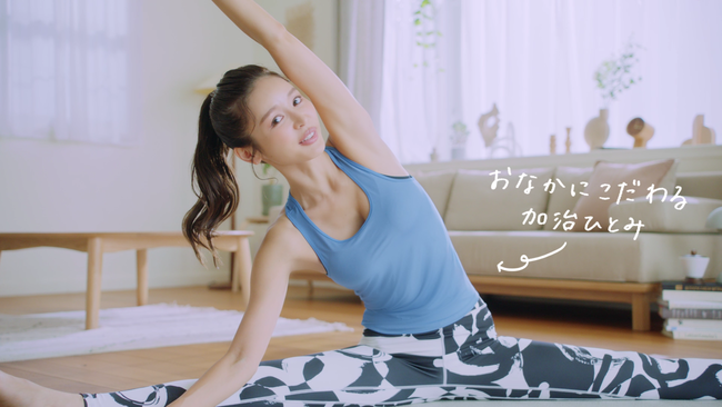 WebCM「ふたりの加治さん」篇では、読書しながらゆったりくつろぐ「甘いものが大好きな加治ひとみ」と、アクティブにストレッチに励む「おなかにこだわる加治ひとみ」が、まるで双子のように登場します。一見、生活スタイルが異なるお二人のようですが、おやつとして同時に手に取るのは「オリゴスマート」!