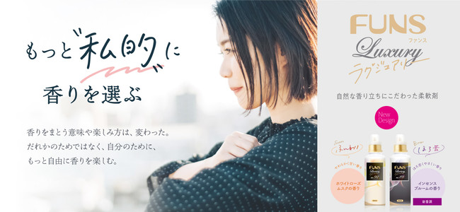 そのような人々の変化に着目し、FUNS Luxury(ファンス ラグジュアリー)を 【強すぎない芳香】という従来のコンセプトはそのままに、より自分らしく香りを楽しみ、普段の生活をさらにアップデートできる柔軟剤へとリニューアルいたします。