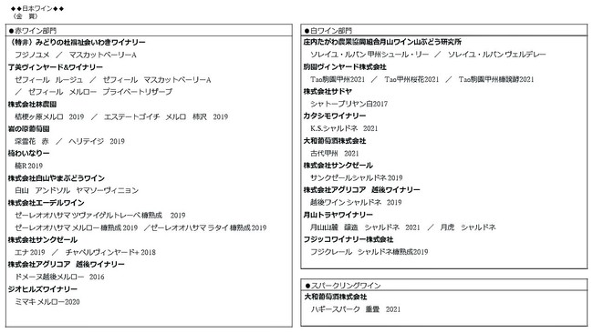 2017年からは、日本人女性審査員の参加とともに日本ワインの出品が始まり、12社30アイテムが出品、うち10アイテム(金賞6・銀賞1・銅賞3)が入賞。