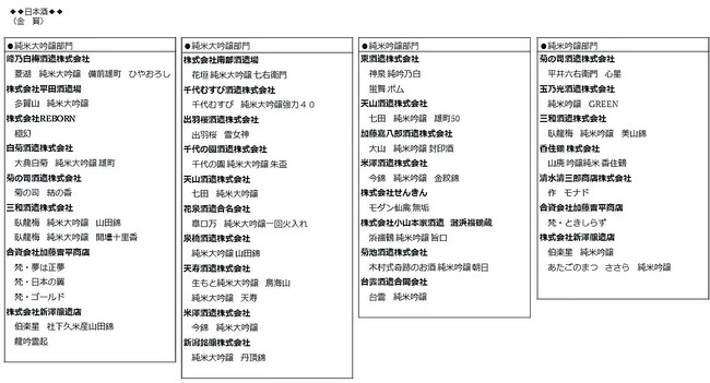 2020年大会からの日本酒は、「純米大吟醸酒」「純米吟醸酒」「純米酒」「熟成酒」「スパークリング酒」の5つの部門。2022年大会からの蒸留酒は「芋焼酎」「米焼酎」「麦焼酎」「黒糖焼酎」「泡盛」「その他の原料の焼酎」「ジャパニーズ・ウイスキー」「ジャパニーズ・ジン」「その他の日本産蒸留酒」の9部門にて審査されました。世界の女性ソムリエが日本産酒に興味を持っている証拠です。さて、今年の詳細は以下です。