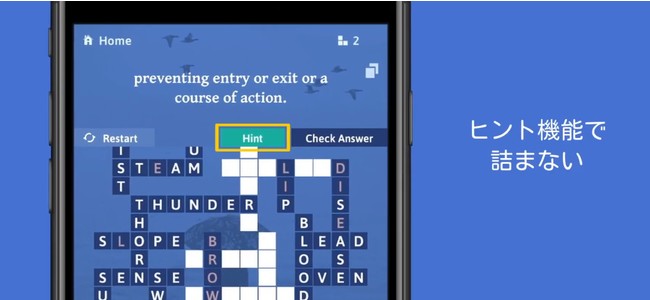 単語帳から難易度、習熟度に合わせて選出するランダム生成で、何度もクロスワードをプレイし英語学習をすることができます。基本の単語帳には約1000単語収録しています。