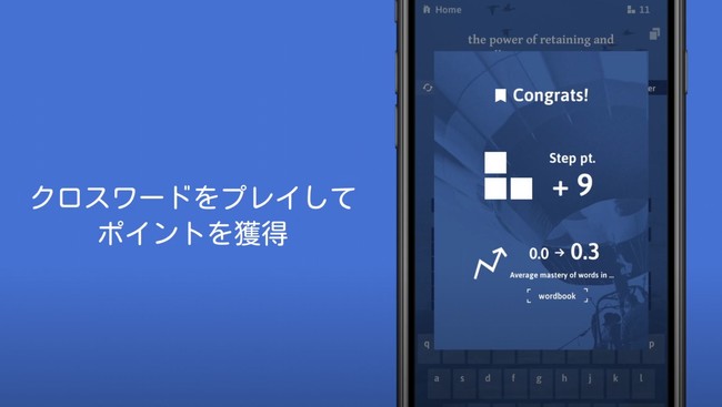 クロスワードを解くとポイントが手に入り、そのポイント単語を追加登録できるようになります。