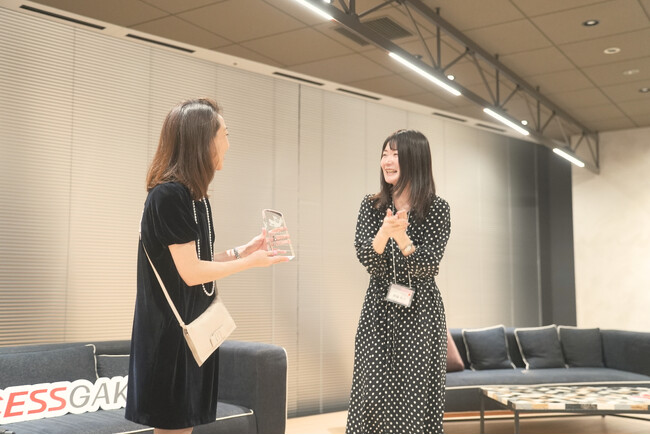この度は、特別賞を頂きありがとうございます。 SuccessGAKO で『カスタマーサクセスは全社で取り組むこと』だと改めて確認でき、また同じ受講生の仲間たちの活動から勇気をもらえたことが私の行動の原動力でした。社内に数百人のカスタマーサクセス仲間ができた今、サクセス思考をもとにした改善活動が活発化しました。全社を巻き込んだ取り組みのため、全社員で取れた賞だと思っており、このような形で特別賞をいただくことができ嬉しく思うとともに、こうした発表の機会をいただけたことに感謝します。