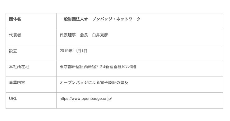 e-mail: info@openbadge.or.jp Tel: 03-5937-0411