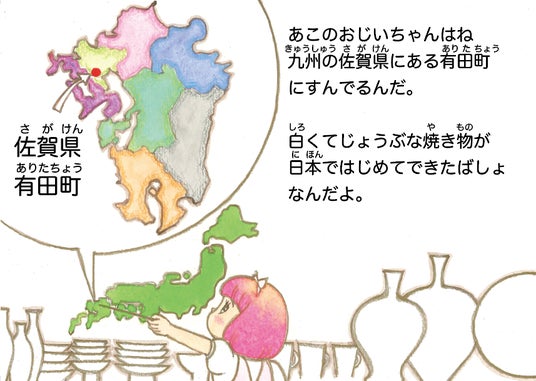 絵本はハードカバー・糸綴じ加工/32ページの本格的な絵本となっており、イラストは有田焼伝統工芸士の山口浩子氏「やまひろ」、ストーリーは幸楽窯代表取締役「徳永隆信」が担当し半年を掛けて作り上げました。
