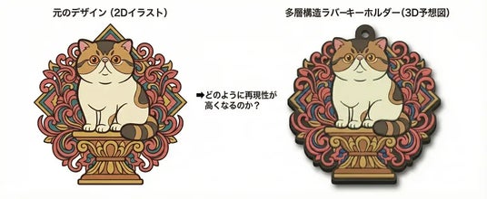 しかし、その需要の高まりとは裏腹に、製作サイドには長年の課題がありました。それは「製作難易度の高さ」です。 画像をプリントするだけのグッズとは異なり、ラバー製品は「金型」を作成し、色ごとに液状の樹脂を流し込んで焼き固めるという工程を経ます。そのため、「線画の太さはどれくらい必要なのか」「隣り合う色はどのように区切ればいいのか」「裏面の仕様はどうなるのか」といった技術的な疑問が尽きず、インターネット上で情報を探しても断片的な知識しか得られないという現状がありました。
