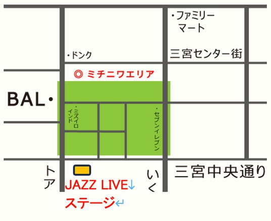 演奏エリア:ミチニワエリア南側 三宮神社北側駐車場付近