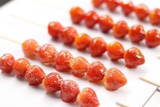 お祭りの定番メニューをもっと身近に。国産いちごのいちご飴をお楽しみください。