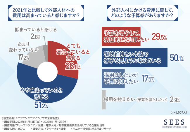 そこで今回、シニアエンジニア向けの求人サイト『SEES』(https://miraie-sees.com/)を運営する株式会社Miraieは、フリーエンジニア/派遣/外部人材/外部業務委託を活用している企業担当者を対象に、「【定点調査】シニアエンジニアについての意識調査」を実施しました。
