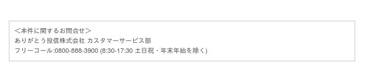 ご購入に際しては、必ずありがとう投信が提供する投資信託説明書(交付目論見書)の内容を十分お読みいただき、お客様自身にて判断いただきますようお願いいたします。