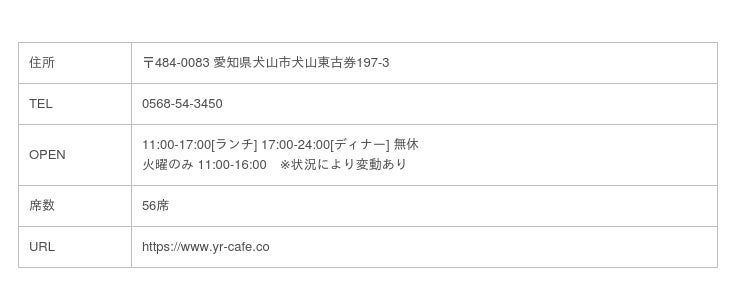 ●YR CAFE by恵比寿楽園テーブル[愛知県犬山市]