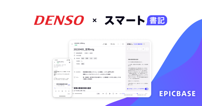 エピックベース株式会社(本社:東京都渋谷区、代表取締役:松田 崇義、以下エピックベース)が提供するスマート書記は、先進的な自動車技術やシステム製品をグローバルに提供する自動車部品メーカー株式会社デンソーに2021年11月より導入され、2022年5月以降、順次利用希望部署への展開を進めることをお知らせいたします。