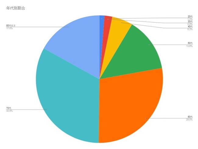 弊社のお客様は、60歳~80歳台がボリュームゾーンです。グラフで示される通り、シニア層からの需要が高い傾向にあります。