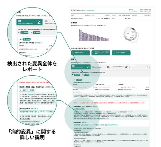 ジーネックスの全ゲノム検査レポートイメージ