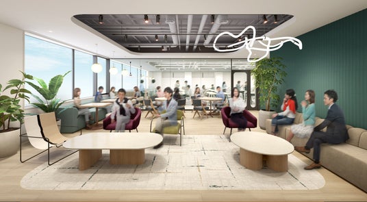 「社員増加に伴い、50席以上ある新しい東京オフィスに移転します。オフィス内のラウンジスペースは今後イベント会場としても活用していく予定です。社員一同、皆様のご期待にお応えし、多くの建設会社さまにサービスを届けていけるよう、一層精進して参りますので、今後ともご愛顧のほどよろしくお願い申し上げます。」