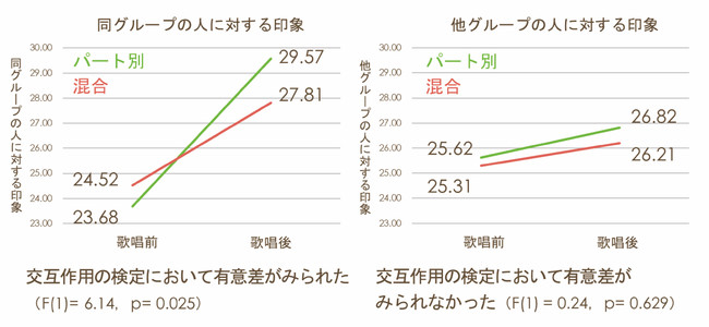パート別歌唱(合唱形態)は同グループの人に対する印象が上がる。