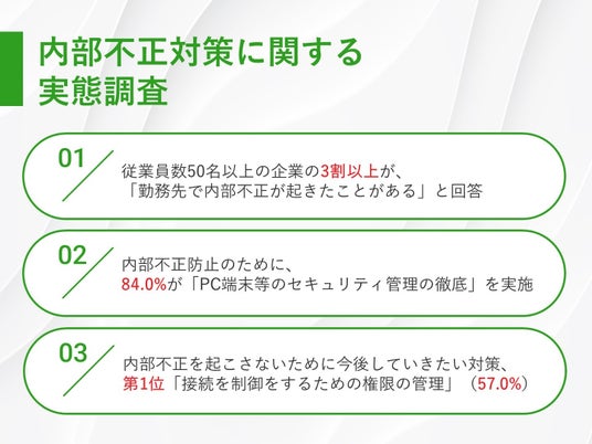 株式会社ボスコ・テクノロジーズ(本社:東京都港区、代表取締役:林 經正)は、従業員数50名以上の企業に勤める情報システム担当者100名を対象に、内部不正対策に関する実態調査を実施しましたので、お知らせいたします。