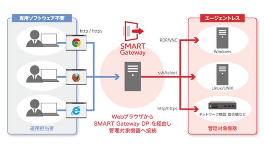 <手元端末・管理対象機器に特別なアプリケーション等の導入が不要のため、スピーディな導入を実現!>