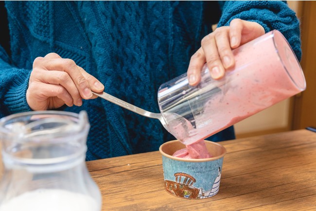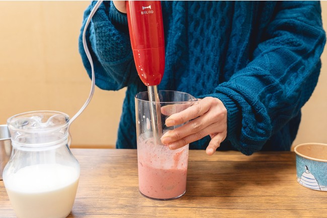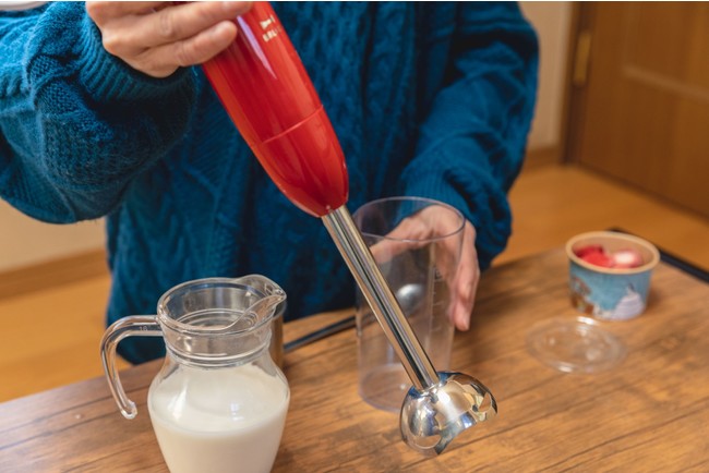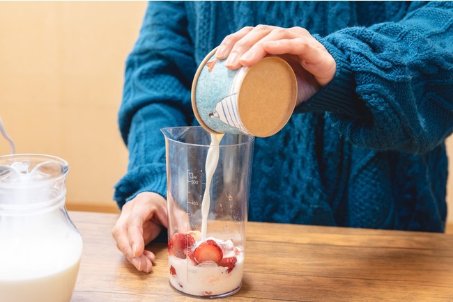 この時、牛乳は「かぞくのスムージー」のカップに約半分。目分量でOK。