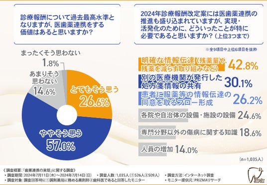 8割がコスト面のメリットも感じる一方、実現のために必要な薬剤師と歯科医のコミュニケーションの機会や、情報伝達手段の構築への課題